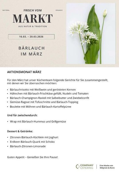Die Widynski & Roick GmbH betreibt unter anderem die Kantinen im Bundeskanzleramt, im Potsdamer Landtag und in der Polizeifachhochschule in Oranienburg. "Kreatives Essen ist unsere Leidenschaft!", werben die neuen Betreiber auf ihrer Homepage. Und ob regional, saisonal oder aus biologischem Anbau - bei der Auswahl der Lebensmittel wird auf höchste Qualität geachtet. Alle Speisen werden täglich frisch vor Ort gekocht.