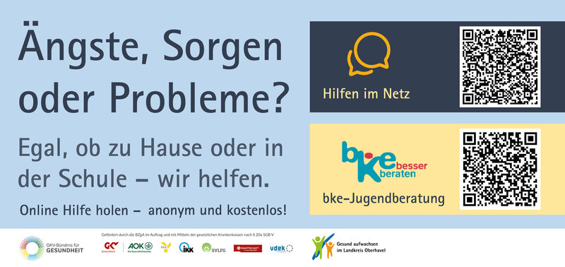 bke-OnlineberatungFür kleine und große Sorgen – egal ob: - Streit oder Ärger mit den Eltern - Probleme mit dir selbst, Freunden oder in der Schule - Liebeskummer oder Geheimnisse, die dir auf der Seele brennen Hier findest du erfahrene Beraterinnen und Berater sowie andere Jugendliche, die dich anonym und kostenlos unterstützen. Weitere Informationen findest du auf der Website unter: bke-Jugendberatung |