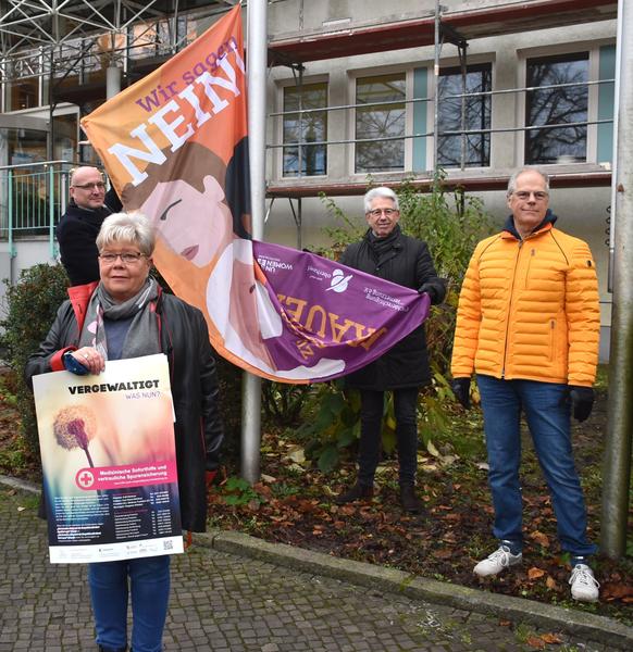 „Die Flagge symbolisiert zugleich Trauer und Wut, aber auch Hoffnung und Freude und überbringt eine wichtige Botschaft: Jeder Tag muss ein Tag ohne Gewalt an Frauen und Mädchen sein! Denn körperliche oder sexuelle Gewalt gehören noch immer viel zu oft und an viel zu vielen Orten zur alltäglichen Erfahrung von Mädchen und Frauen“, sagte Landrat Ludger Weskamp.