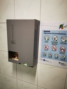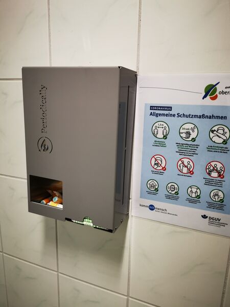 Ab sofort werden in den Damentoiletten der Kreisverwaltung Oberhavel kostenfreie Menstruationsprodukte angeboten. „Die Menstruation ist noch immer ein großes Tabuthema - dabei betrifft sie etwa die Hälfte der Weltbevölkerung und auch einen Großteil der Beschäftigten und Besuchenden des Landkreises. Menstruationsprodukte sollten daher ebenso selbstverständlich zur Verfügung stehen, wie Toilettenpapier, Handtrockentücher oder Seife“, sagt die Gleichstellungsbeauftragte des Landkreises Oberhavel, Birgit Lipsky.