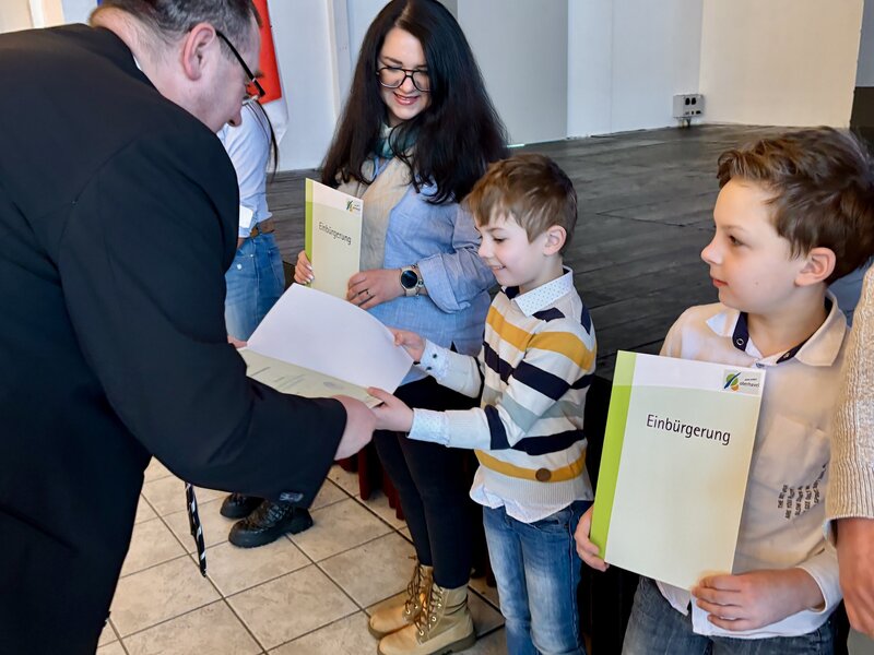 Sozialdezernent Tobias Berger übergibt Einbürgerungsurkunden an Menschen aus 23 Herkunftsländern