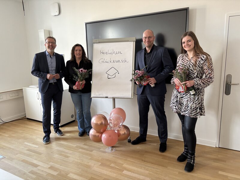 Landrat Alexander Tönnies hat jüngst den neuen Bachelor-Absolventinnen und dem Bachelor-Absolventen der Kreisverwaltung zum Abschluss ihres Studiums gratuliert. Michelle Bernhardt, Christian Gerigk, Hazel Tonne und Marika Wrana sind nun Bachelors of Law (Öffentliche Verwaltung Brandenburg). Sie waren bereits vor ihrem Studium Mitarbeitende der Kreisverwaltung und werden dort auch zukünftig arbeiten.