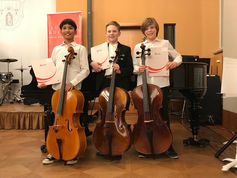 Herausragende Ergebnisse und wertvolle Erfahrungen: Drei Schüler der Kreismusikschule Oberhavel bewiesen am vergangenen Wochenende beim Landeswettbewerb von Jugend musiziert, was in ihnen steckt. Das Cellotrio aus Rafael Junge, Elias Martin und Ethan Jayakody belegte im Altstädtischen Rathaus in Brandenburg an der Havel den ersten Platz in der Kategorie Kammermusik für Streichinstrumente in der Altersgruppe II. Zuvor hatten die drei Jungen, die bereits im Exzellenzzirkel des Landesverbandes VdMK gefördert werden, Platz 1 im Regionalwettbewerb erreicht. Für eine Teilnahme am Bundeswettbewerb sind sie jedoch noch zu jung.