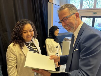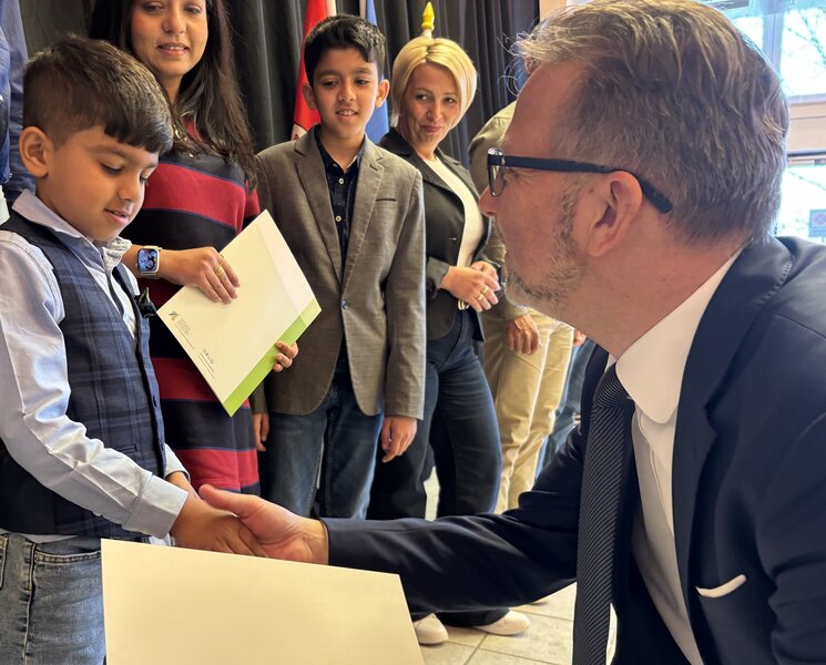 Insgesamt 61 Menschen aus 23 Herkunftsländern haben am Mittwoch, 15.04.2026, von Landrat Alexander Tönnies in der KulturFUGE ihre Einbürgerungsurkunde bekommen. Sie stammen aus den USA, Syrien, Kuba, Italien, Moldau, dem Sudan, Griechenland, Bosnien und Herzegowina, Weißrussland, Nigeria, Serbien, Kroatien, dem Irak, Polen, Ägypten, Bulgarien, Pakistan, Brasilien und den Philippinen. Die meisten Neubürgerinnen und Neubürger kommen aus Russland, dem Iran, Afghanistan und der Ukraine.